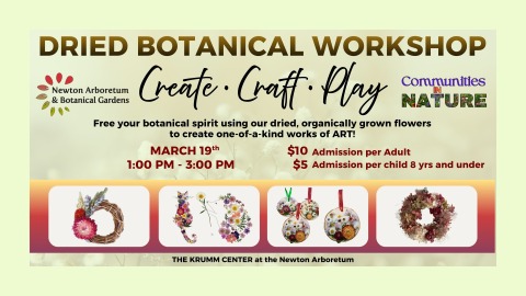 Free your botanical spirit using our dried, organically grown flowers to create one-of-a-kind works of ART! Beautiful flowers harvested & preserved from the 2025 season are ready for crafting. Gomphrena, hydrangea, celosia, marigolds, and more! Choose paper art, small wreaths, or wood slices for your base . . . then create! Our horticulturist and board members will be on-hand to provide guidance as needed. General Admission: $10 per person Children's Admission (8yrs and under): $5 per child Space is limited. Sign up today! All proceeds benefit the Newton Arboretum, a 501(c)(3) nonprofit.